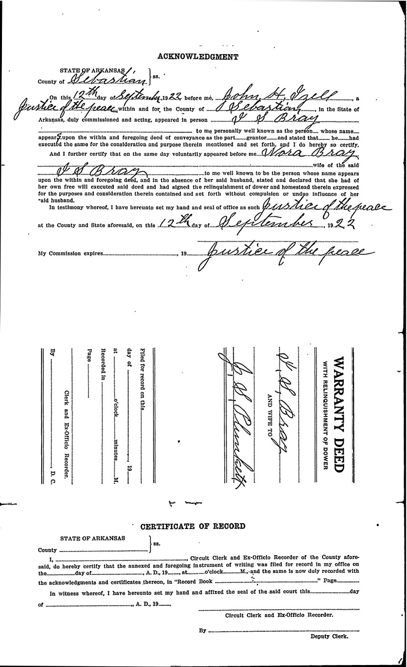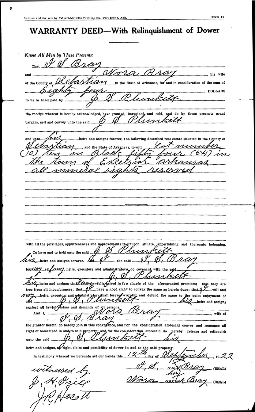Deed from I.S. & Nora Bray to J.S. Plunkett