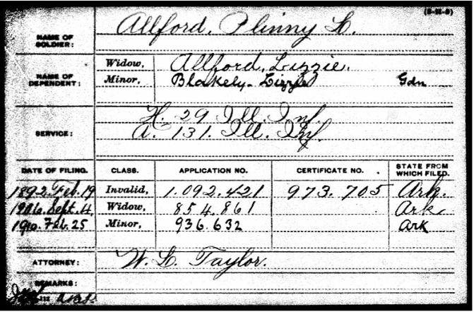 Plinny Lee Allford was born November 1, 1844 in Scioto Co., Ohio to