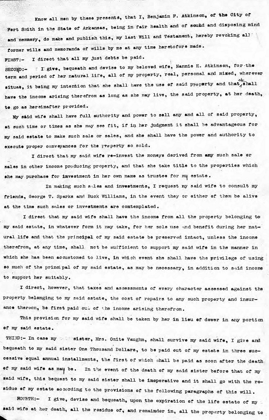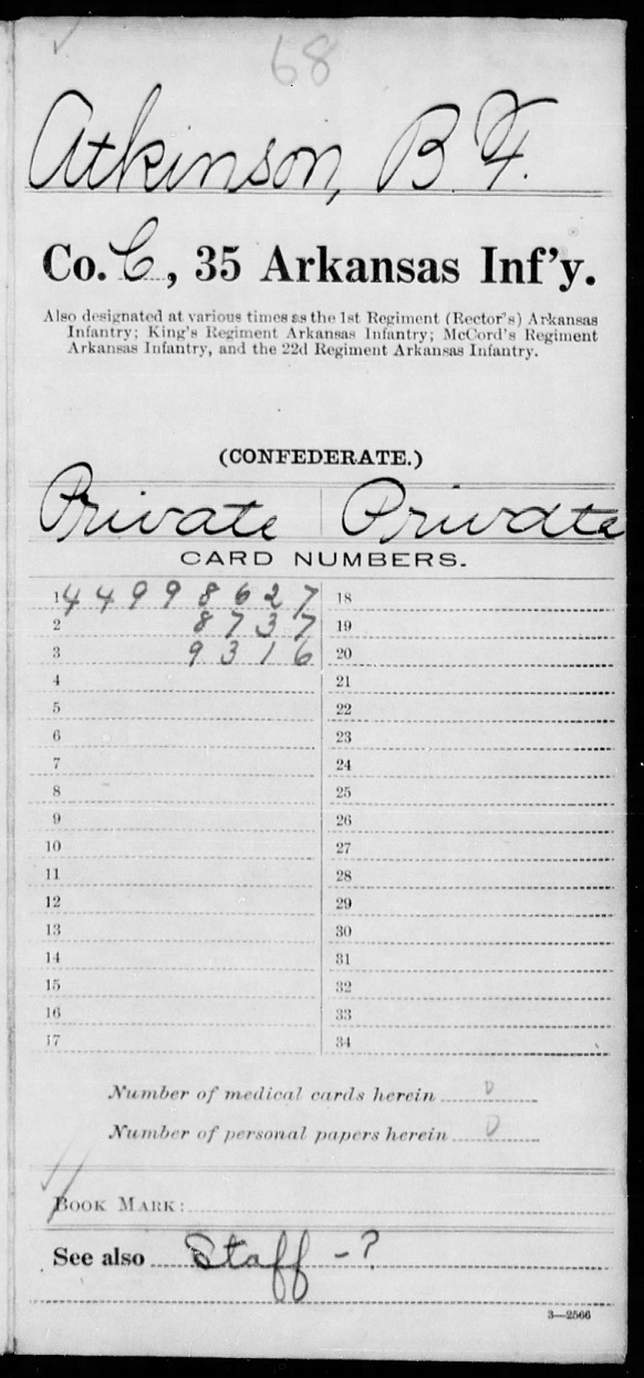 Benjamin "Ben" Franklin Atkinson was born in 1837 in Arkansas to