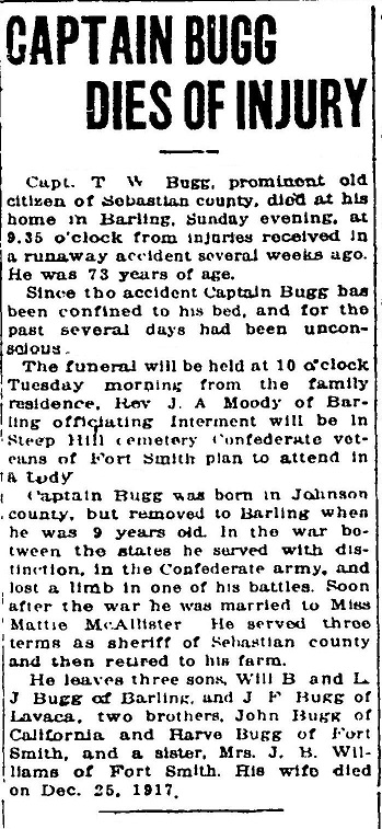 William Thomas Bugg was a resident and sheriff of Sebastian County, Arkansas (served from 1892 to 1896). He was born in neighboring