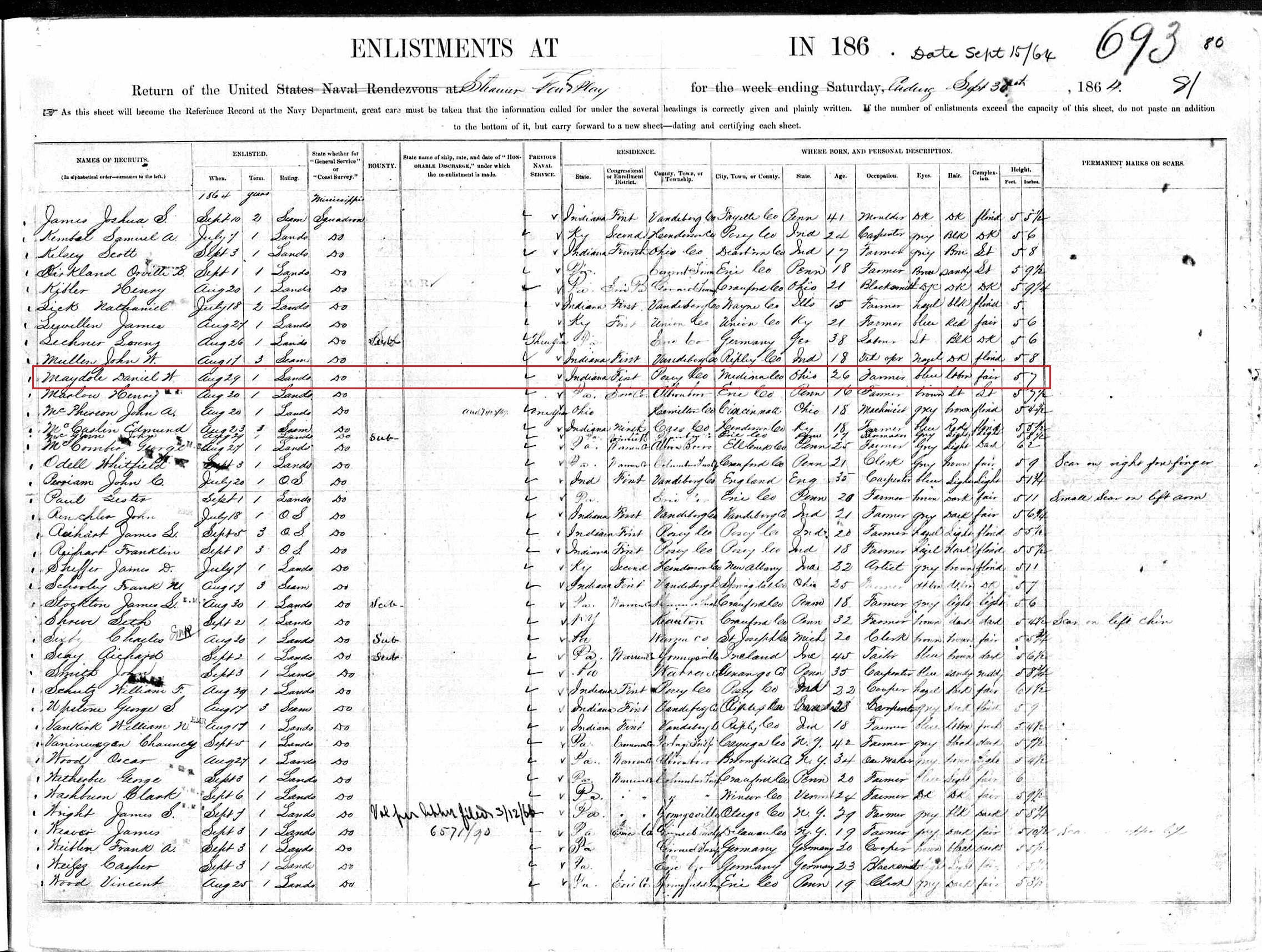 August 29, 1864 Daniel enlisted in the Navy on the USS Fairplay