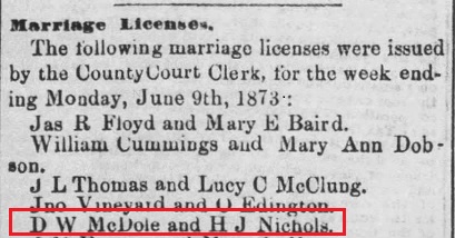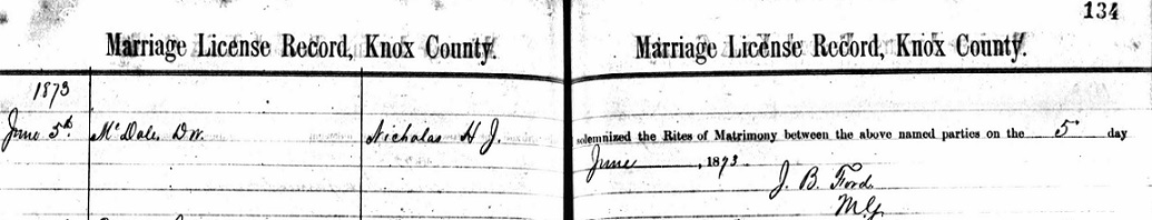 He married Hettie Jane Nichols June 4, 1873 at Knoxville, Tennessee