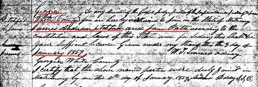 James Anderson Pitchford was born October 3, 1838 in Habersham Co., Georgia to