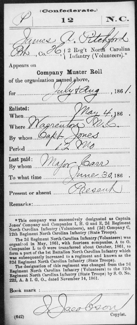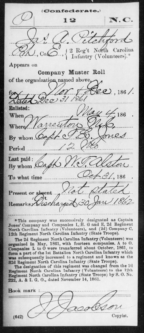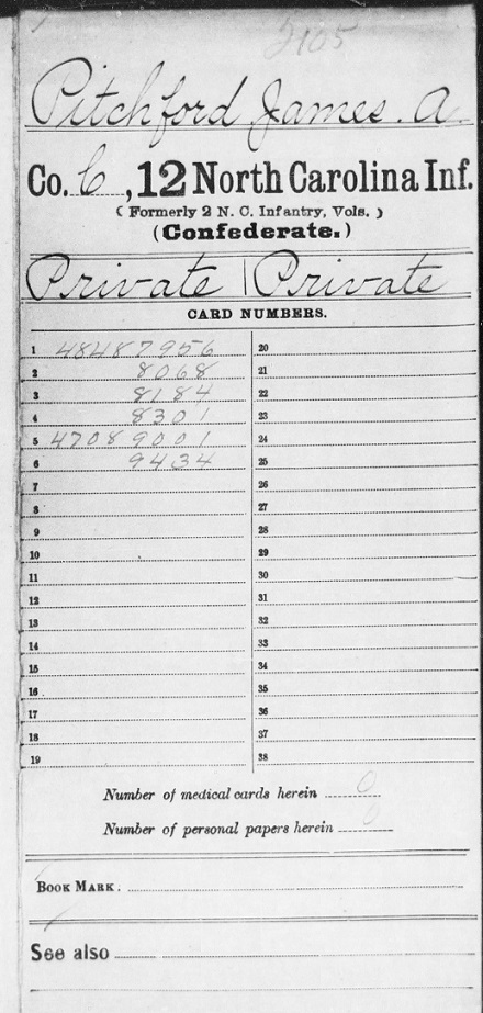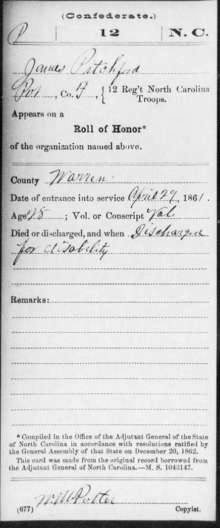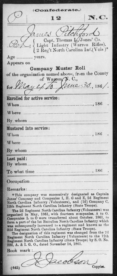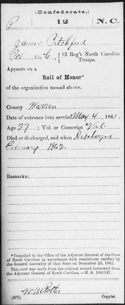 James enlisted with the Confederate Army Co. C. 12th North Carolina.