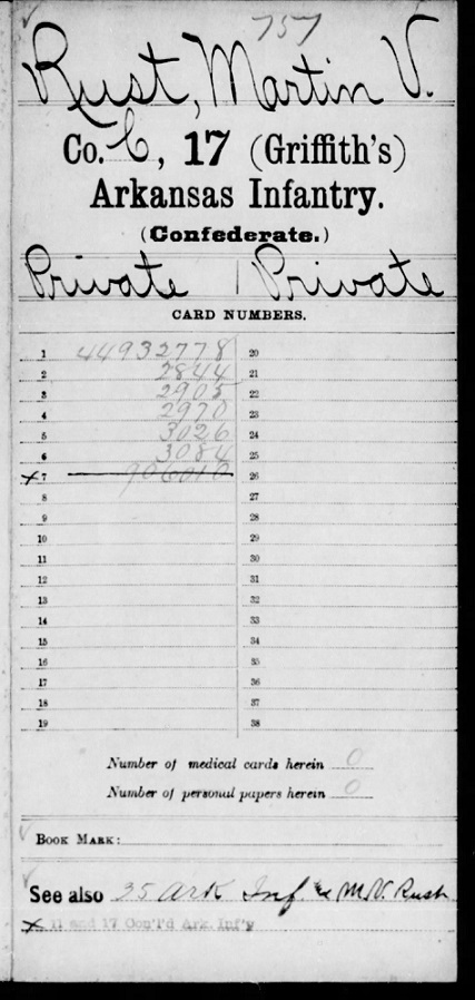 Martin VanBuren Rust was born in 1839 in Weakley Co., Tennessee