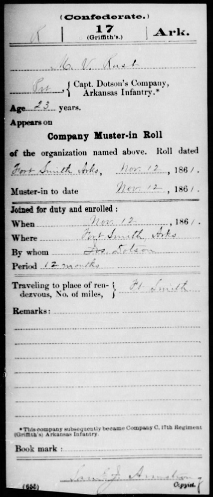 Fort Smith, Sebastian Co., Ar. He mustered in the