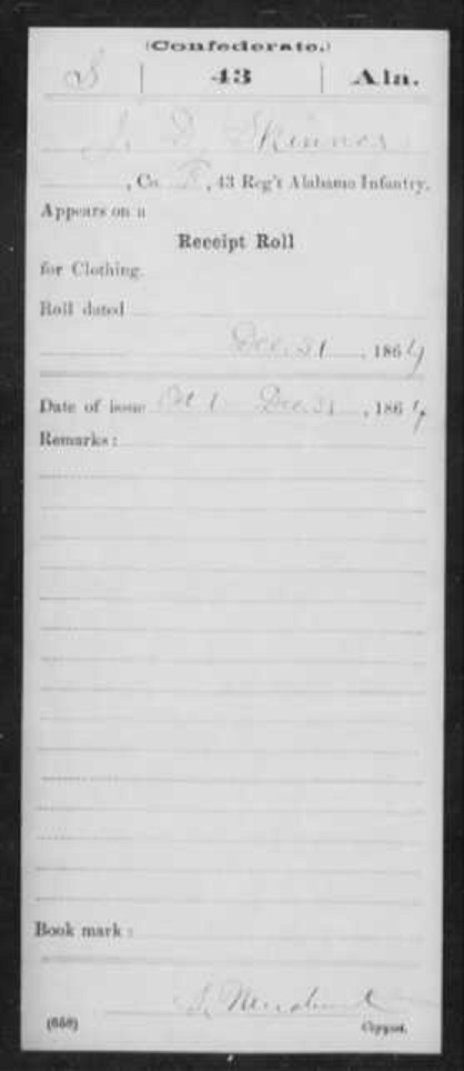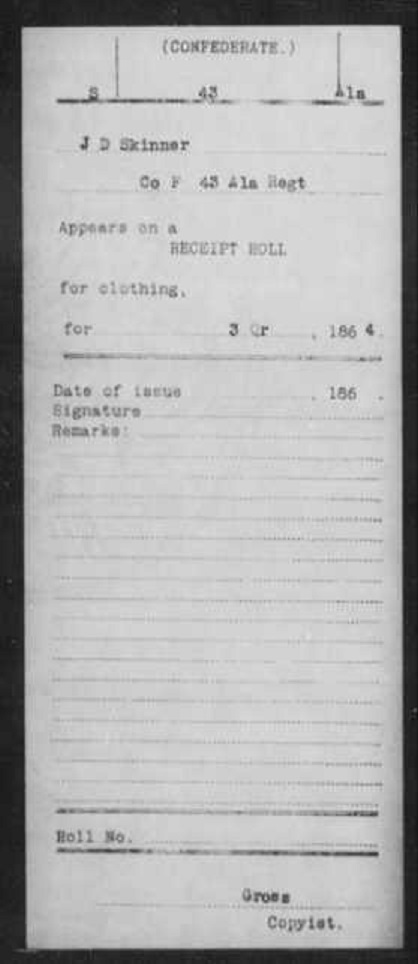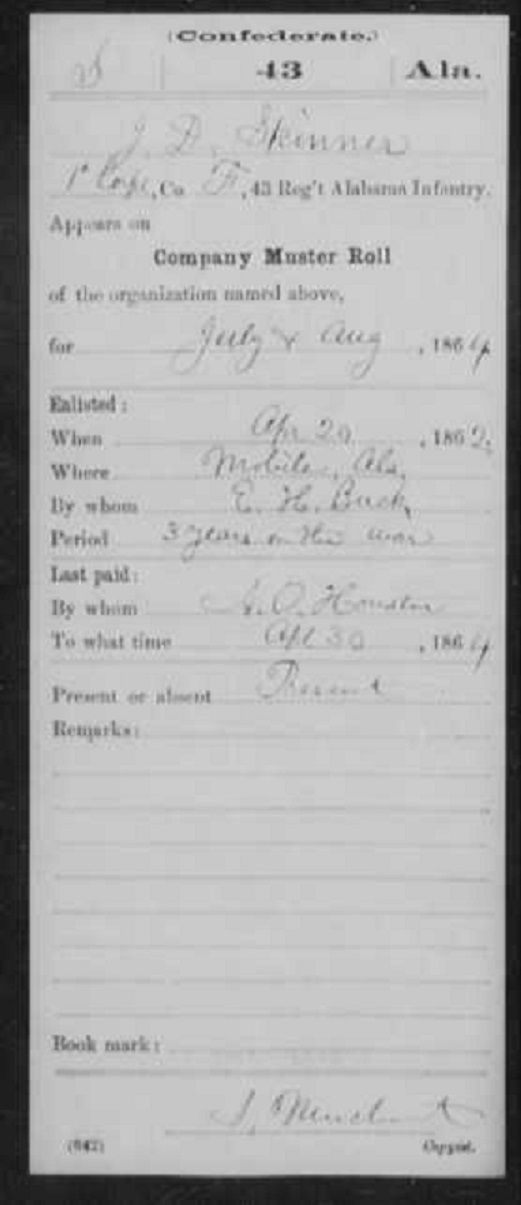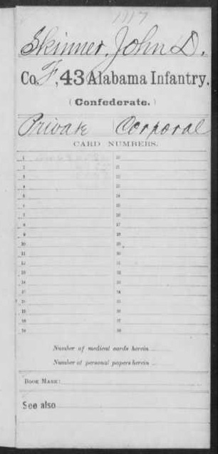 John David Skinner, Sr. was born March 10, 1845 in Birmingham,