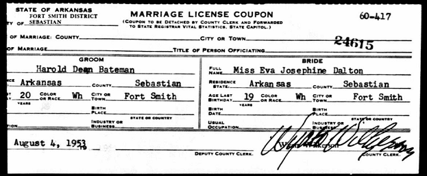 Harold Dean Bateman was born November 230, 1932 at Tulsa, Tulas Co., Oklahoma to