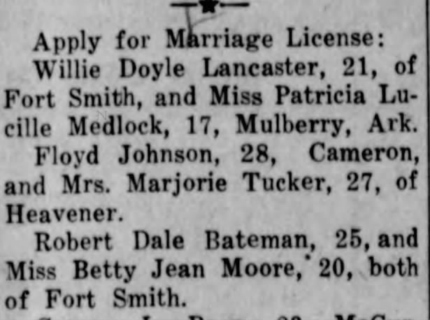 He married Betty Jean Moore in October 1955 at Fort Smith, Arkansas where they