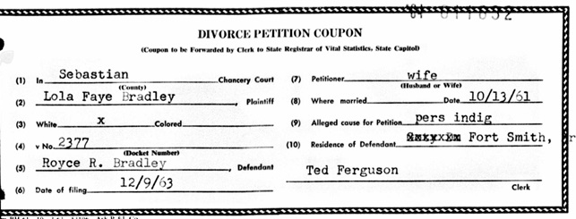 Lois Faye Sleeper. They divorced Decembr 9, 1963. His second wife was