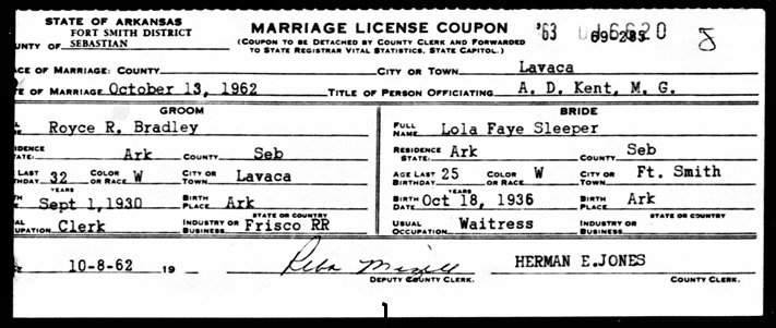 Arthur James & Bertha Graham Bradley. October 15, 1962 he married