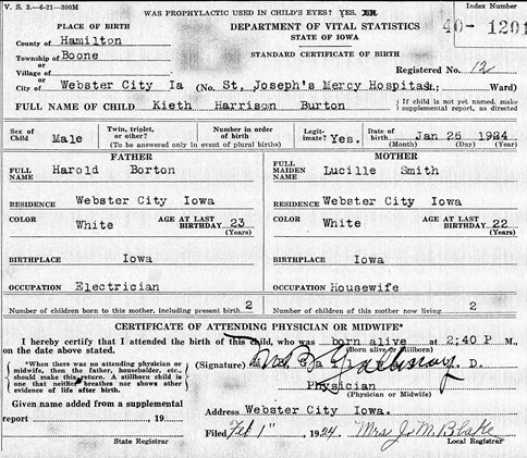 Webster City, Hamilton, Iowa to Harold & Lucille Smith Burton.