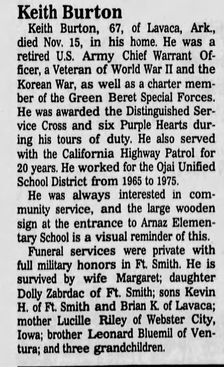 Keith passed away Novembr 15, 1991 at Lavaca, Sebastian Co., Ar.