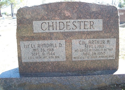 Marine Lt. Col. Arthur Aldoph Chidester was born Sep 1, 1913 in Fort Smith, Ar. to
