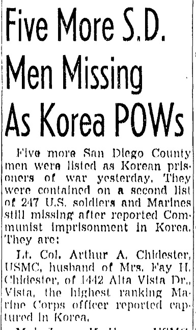 While serving in Korea, Attached to Headquarters, 1st Marine Division, he was wounded, captured November 29, 1950