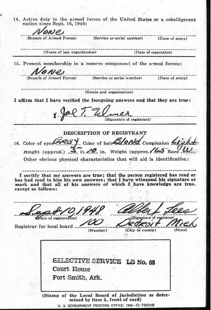 Fort Smith, Ar. for the Selective Service. At that