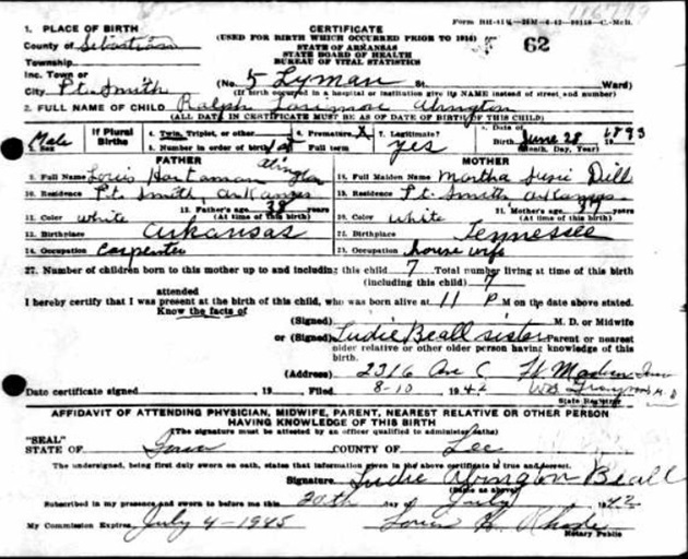 He was employed by Spear Hardware in Fort Smith at that time.