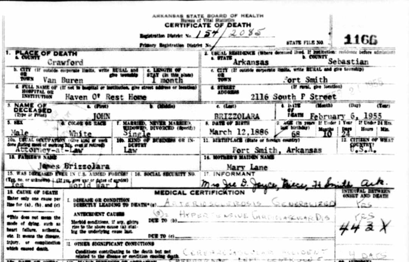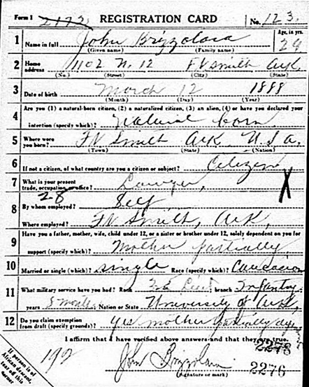 John Brizzolara was born March 12. 1888 in Fort Smith,
