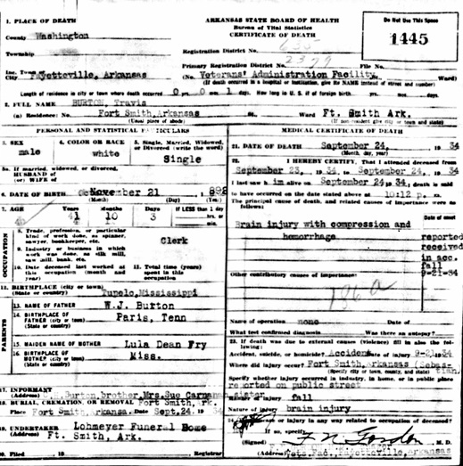 Travis Milton Burton was born November 21, 1893 in Mississippi