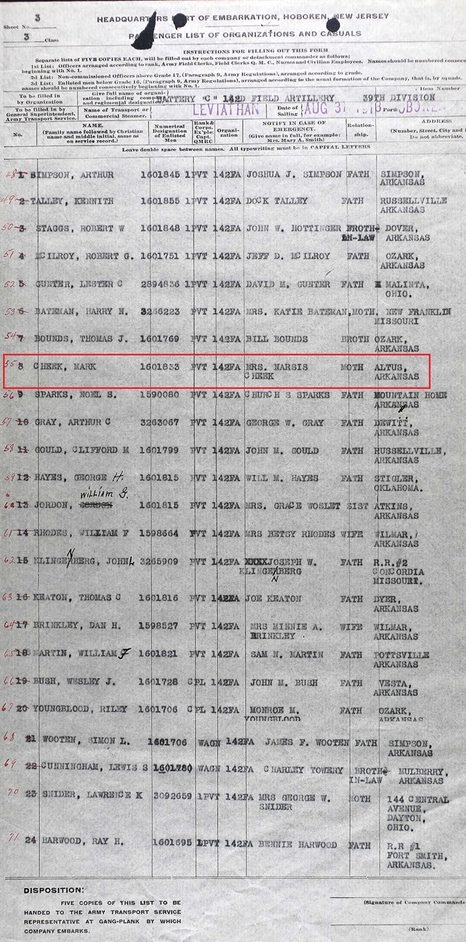 Mark served with Battery "C" 142d Field Artillery as a Private