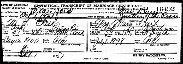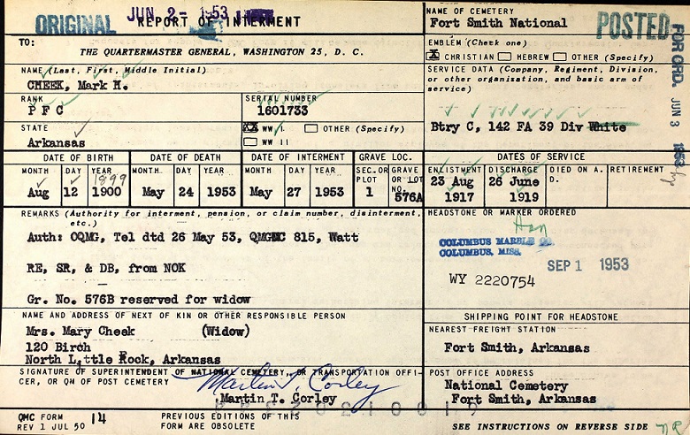 Mark passed away May 24, 1953 in Jacksonville, Pulaski Co., Ar. His