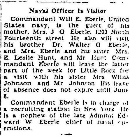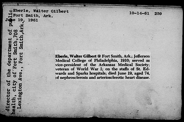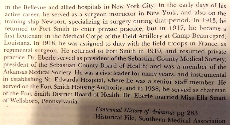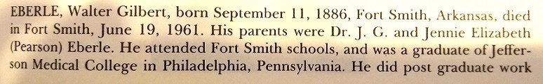 Dr. William Gilbert Eberle was born at Fort Smith, Sebastian Co., Ar.