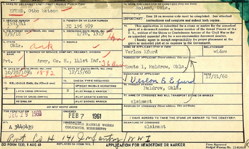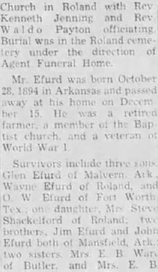 Otho Watson Efurd was born October 28, 1894 in Greenwood,