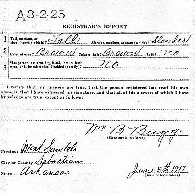 Otho registered for the miitary draft June 5, 1917 at Mont Sandels,