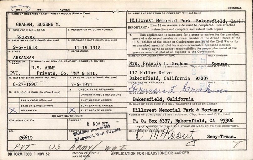 Eugene passed away July 5, 1971. His burial was