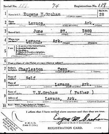 June 5, 1918 Eugene registred for the military draft at