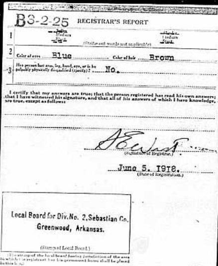Greenwood, Sebastian Co., Ar. September 6, 1918 he