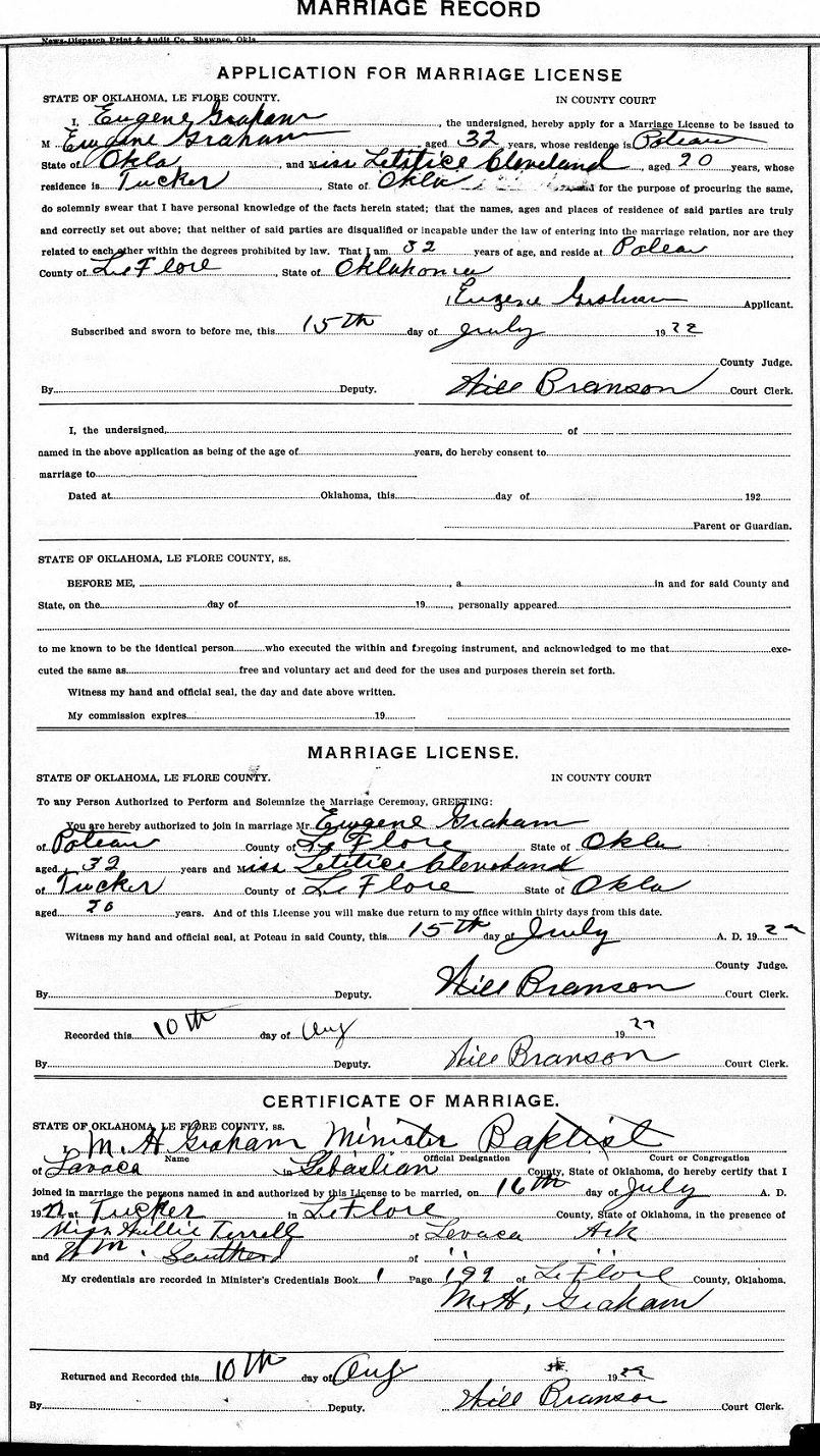 He married Frances Letetia Cleaveland, a Choctaw Indian.