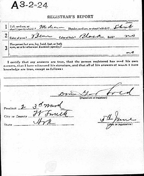 Martin registered for the military draft June 6, 1917 at Fort Smith,