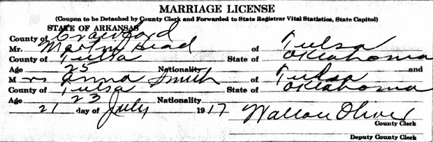 He married Anna Smith in Crawford Co., Ar. July 21, 1917. Their
