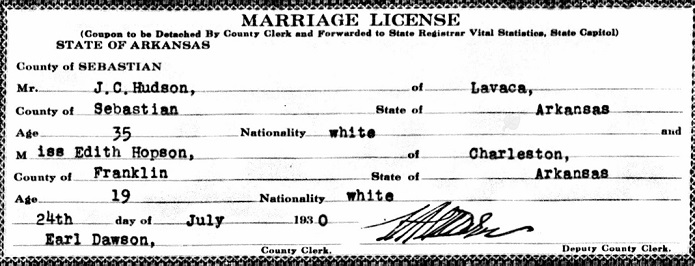 July 27, 1930 he married Edith M. Hopson from Charleston, Franklin