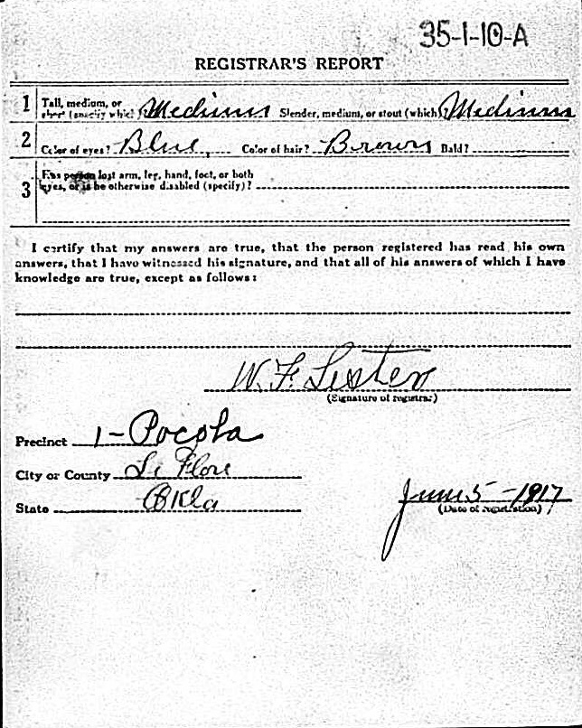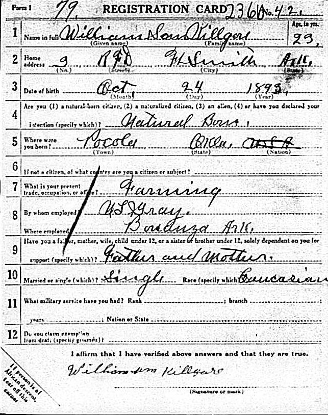 William registered for the military draft June 5, 1917 at Fort Smith, Sebastian