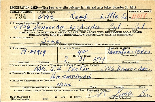 Opie Read Little, Sr. was born July 31, 1899 Texas to