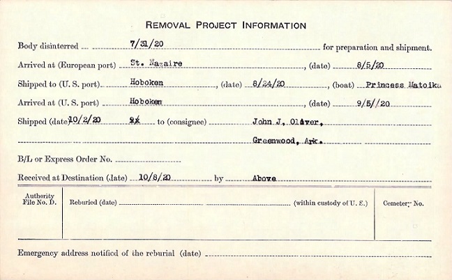 Sherman Charles Oliver was born April 9, 1896 in Sebastian Co., Ar. to John J. & Permelia /Amelia