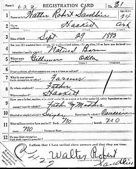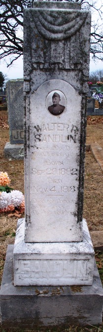 Walter Robert Sandlin was born September 29, 1892 at Gilmore, LeFlore Co.,