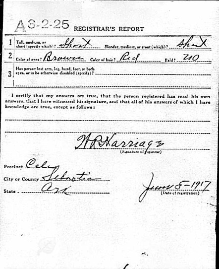 Walter registered for the military draft June 5, 1917 at Cole Twsp., Sebastian Co.