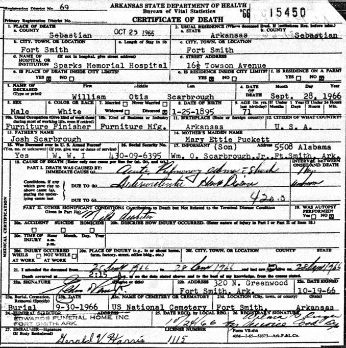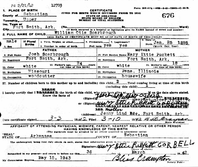 William Odis Scarbrough was born January 25, 1894 in Arkansas to