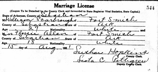 Joshua & Mary Etta Puckett Scarbrough. August 15, 1921 he married
