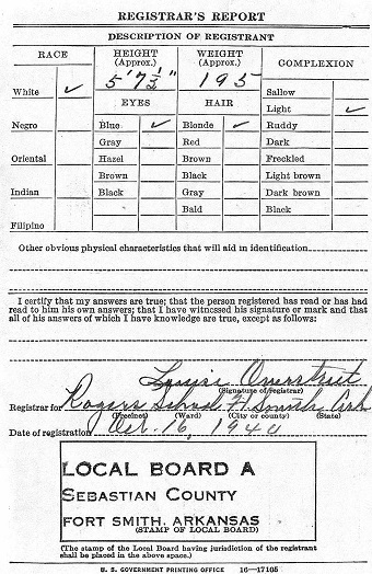 Harry registered for the military draft October 16, 1940 at Rogers School in Fort