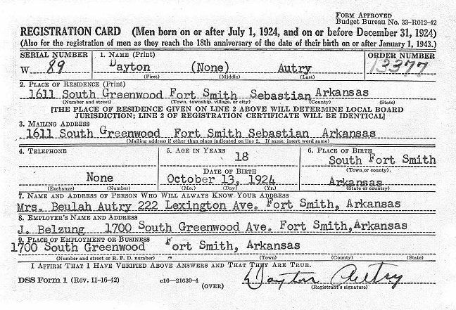 Dayton Autry, 65, of Van Buren died Saturday, December 2, 1989 in a Fort Smith hospital.