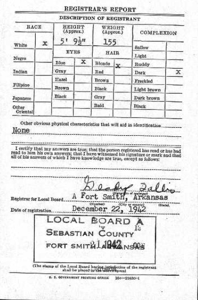 He was survived by his wife Peggy; his son, Gary of Van Buren; his sister, Pauline Ernest of El Paso, Texas; his brother, L.D. of Cherry Valley, California; and two granddaughters.