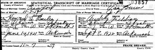 Nov. 7, 1959 Howard married Audrey Mae Blythe Fielding at Van Buren,