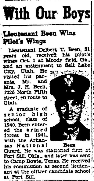 Delbert Troy Been was born January 21, 1922 at Fort Smith, Sebastian Co., Ar to