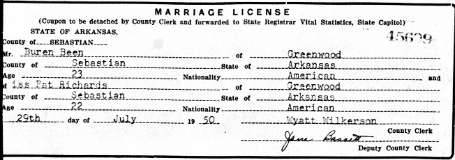 Patricia Richards, both being from Greenwood, Sebastian Co., Ar.