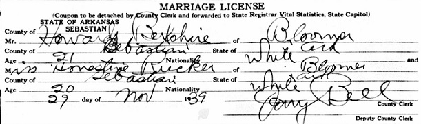 Honestine Elizabeth Rucker. They both were living in Bloomer, Sebastian Co., Ar. at