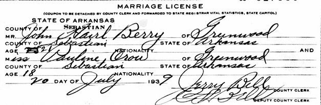July 20, 1939 John married Pauline Harriet Crow of Greensood,
